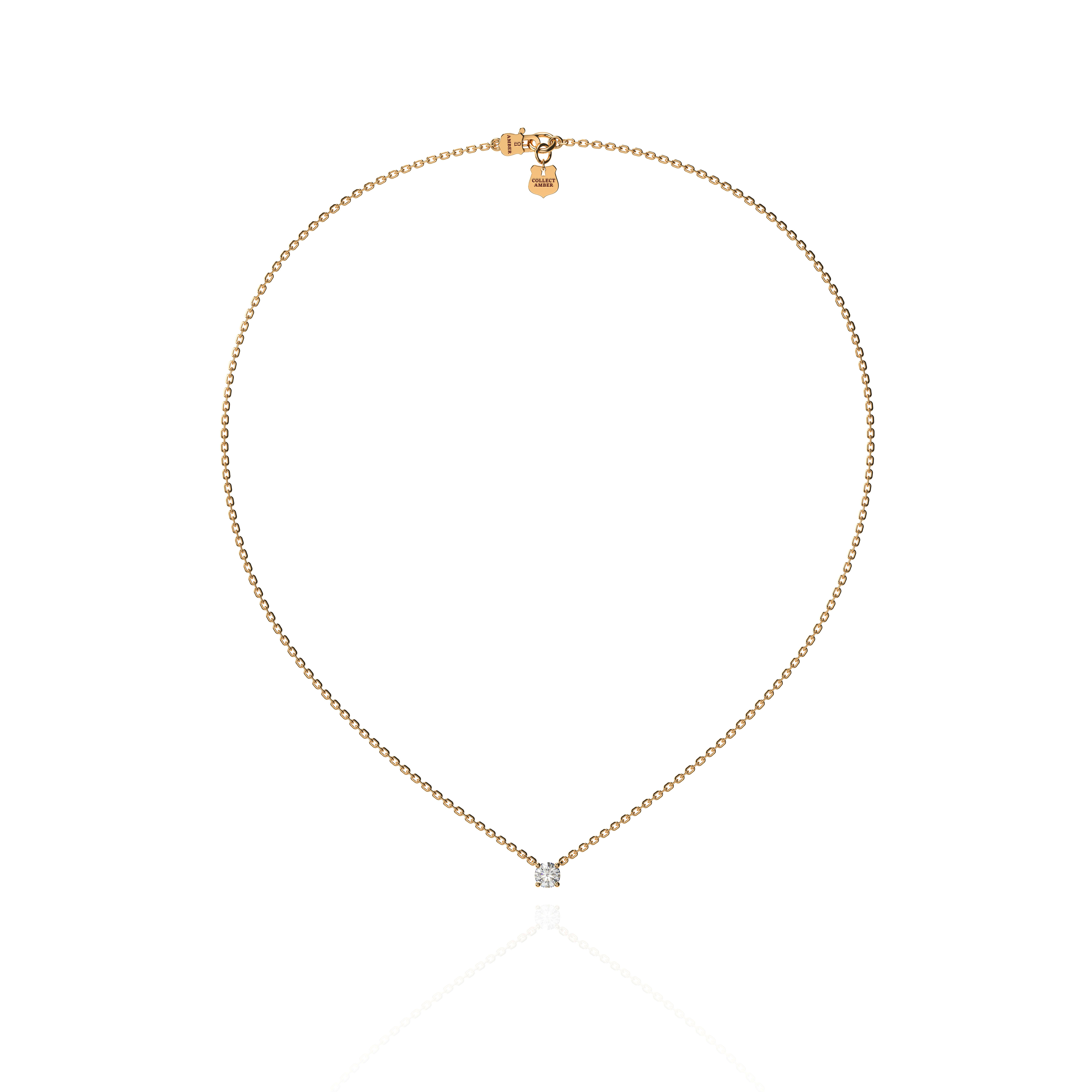 Amber의 Round Full-Gold Setting Necklace는 0.3ct 라운드 랩다이아몬드가 지닌 작은 빛의 떨림 같은 섬세한 반짝임을 가장 정교하게 담아낸 미니멀 파인주얼리입니다.