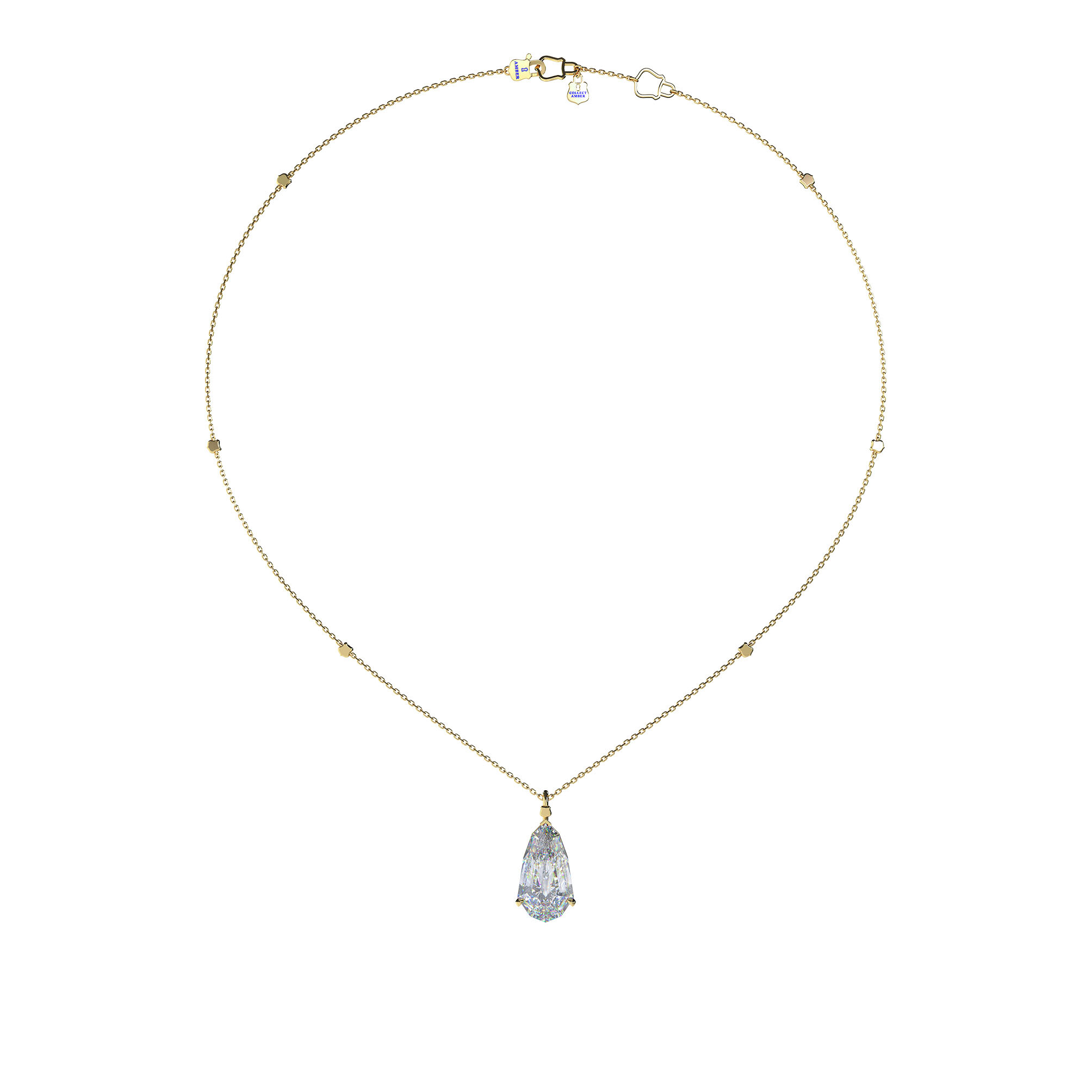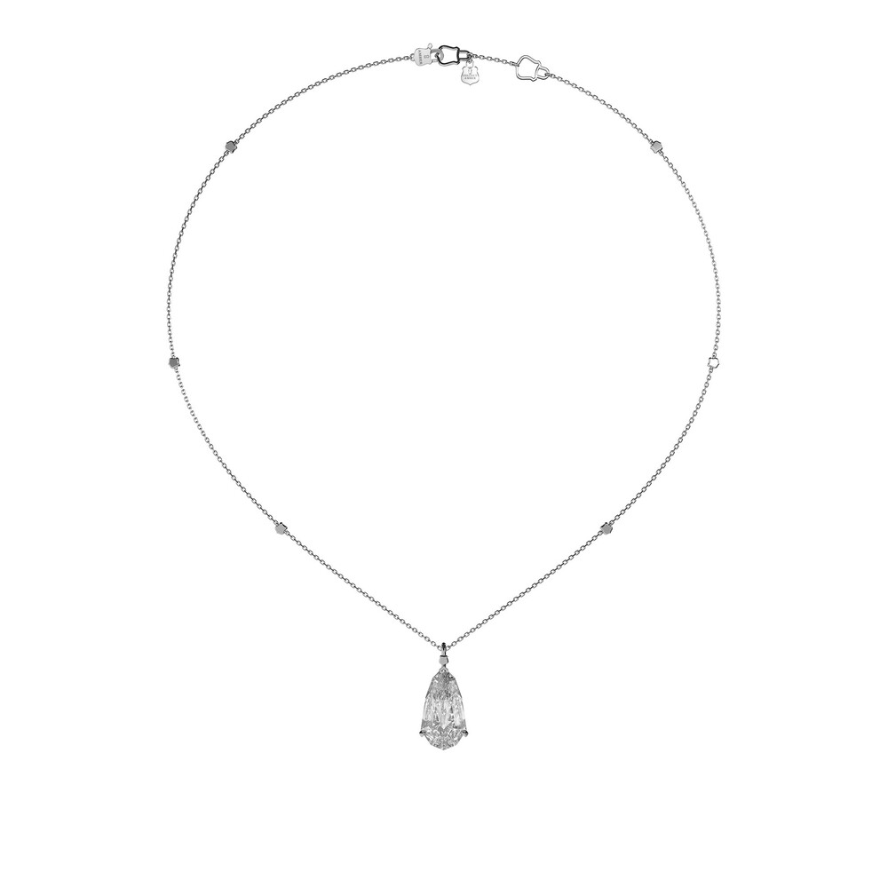 Amber의 상징인 Aegis 엠블럼이 세팅된 18K 골드 체인 위에, 하나의 작품처럼 떨어지는 7.52캐럿 랩 다이아몬드 팬던트를 더해 완성한 Amber의 하이엔드 파인주얼리 라인입니다.