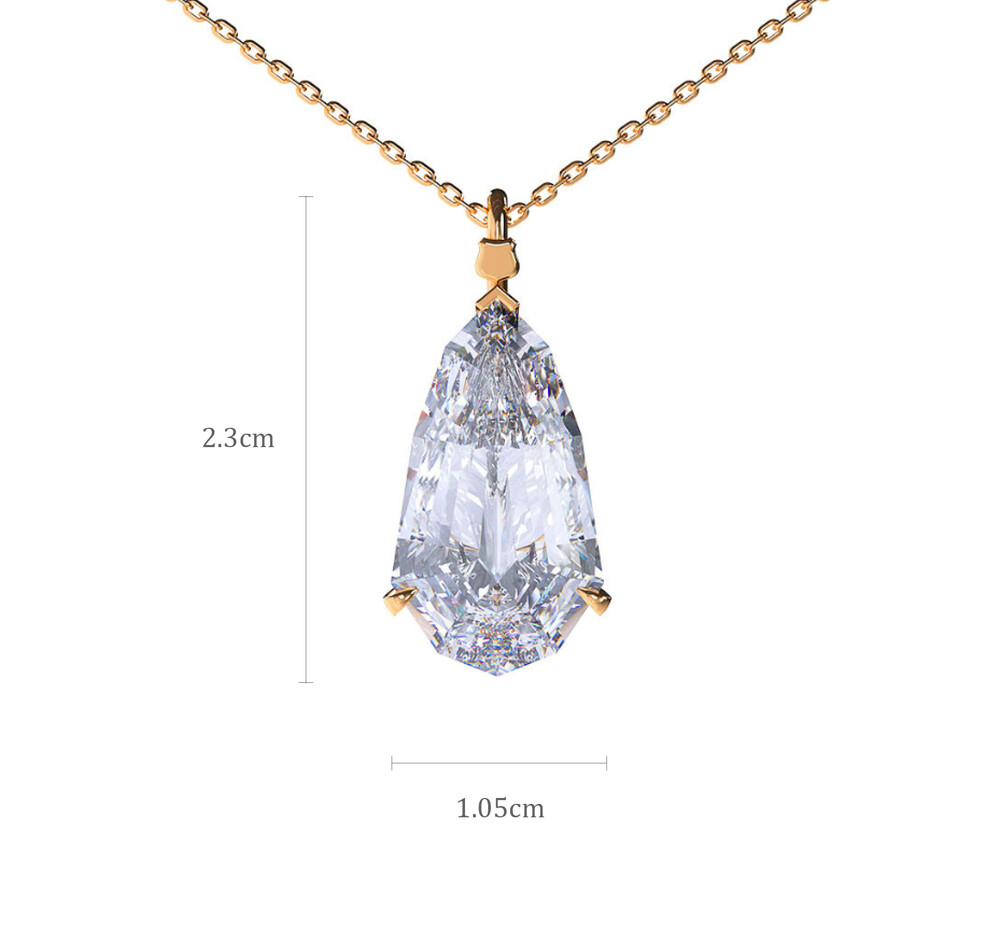 길게 늘어진 물방울 형태처럼 보이지만, 일반 페어 컷과는 차원이 다른 더 깊은 내부 반사, 더 길게 흐르는 파이어, 더 미세한 각도에서 일어나는 라이트 플레이를 구현한 구조로 설계되었습니다.