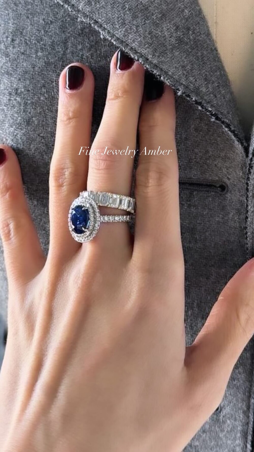 Blue Lab 6ct sapphire Lab diamond gold