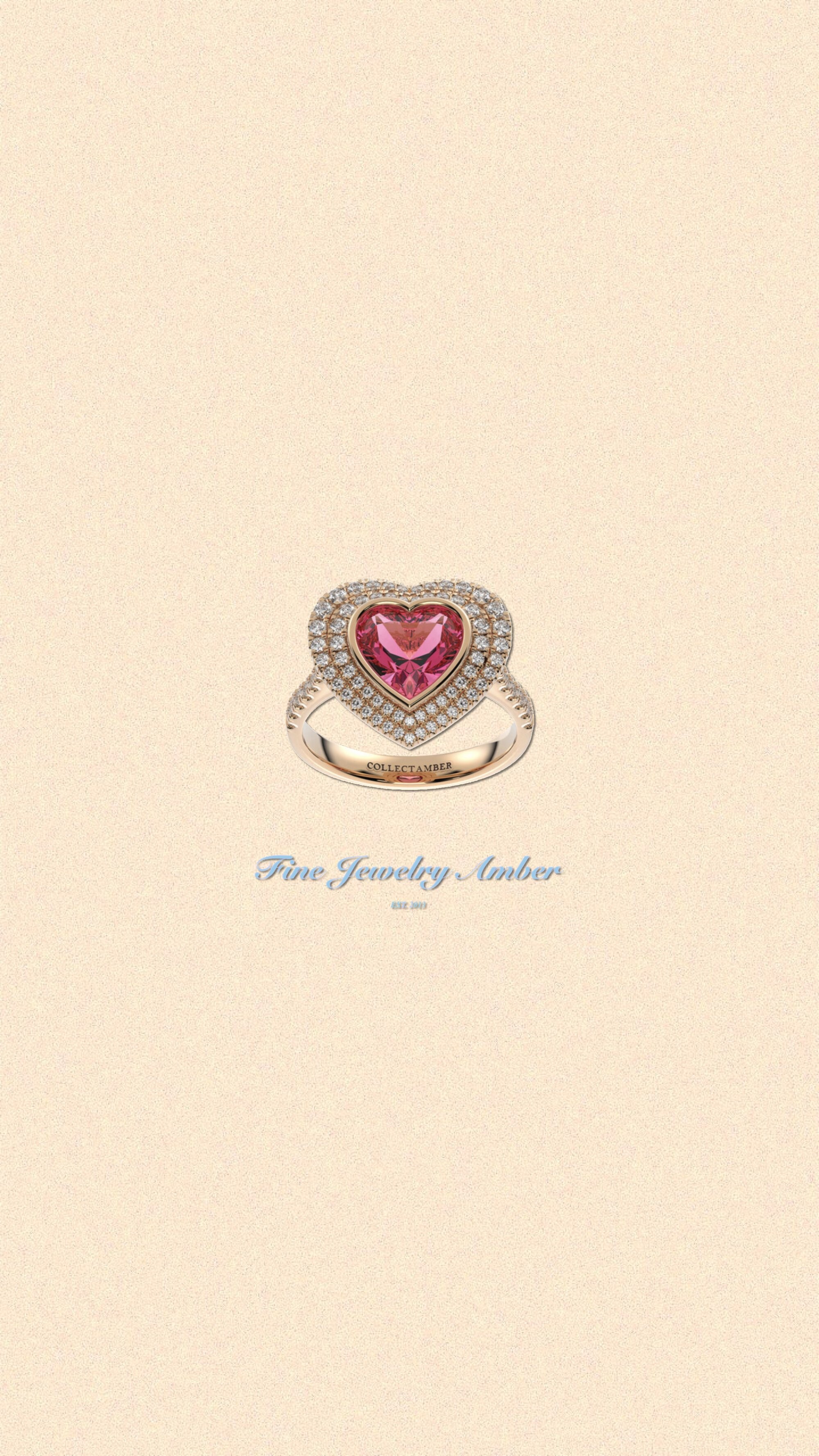 “로맨틱한 핑크 하트 사파이어와 18K 골드의 조화를 통해AMBER는 당신의 손끝에 부드러운 사랑의 빛을 더해드립니다.”
