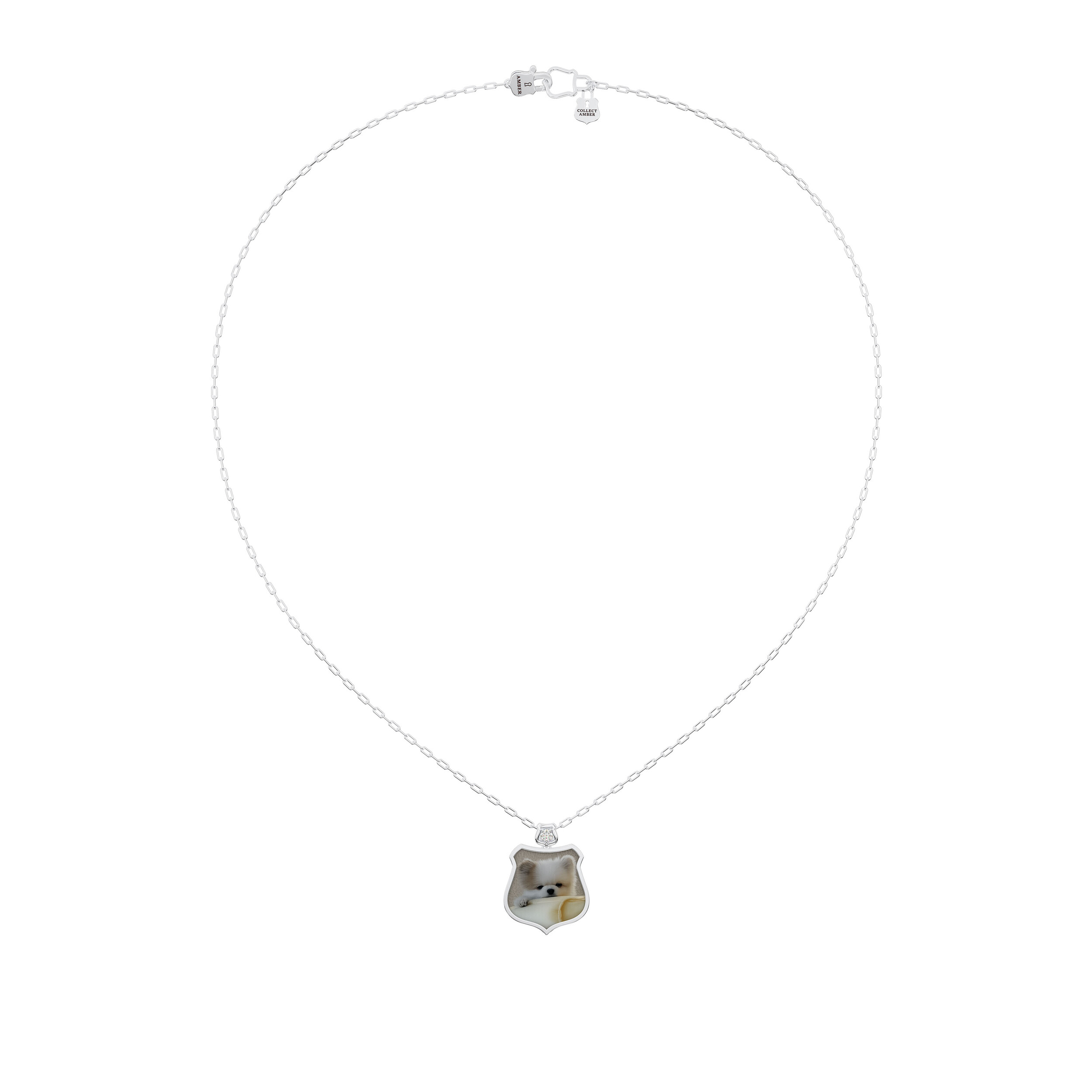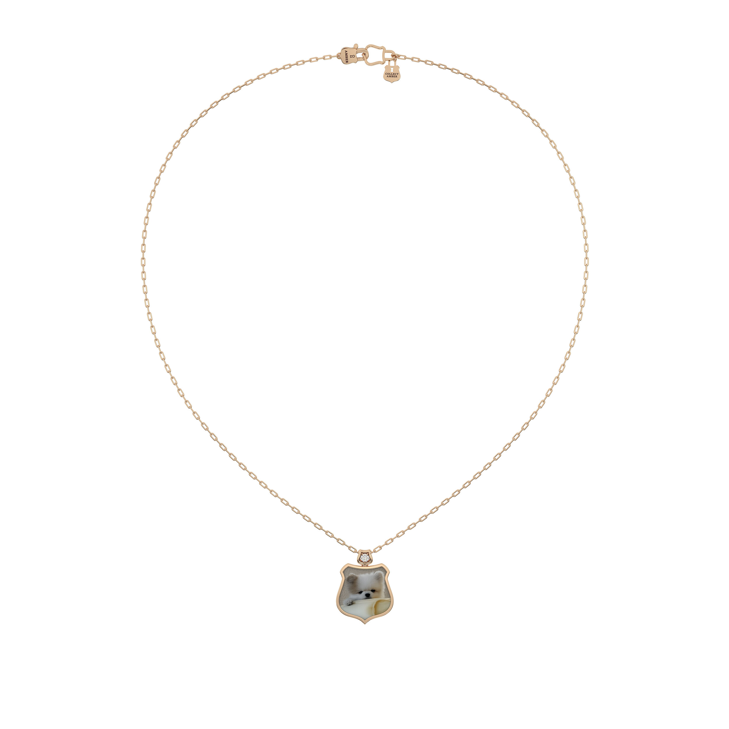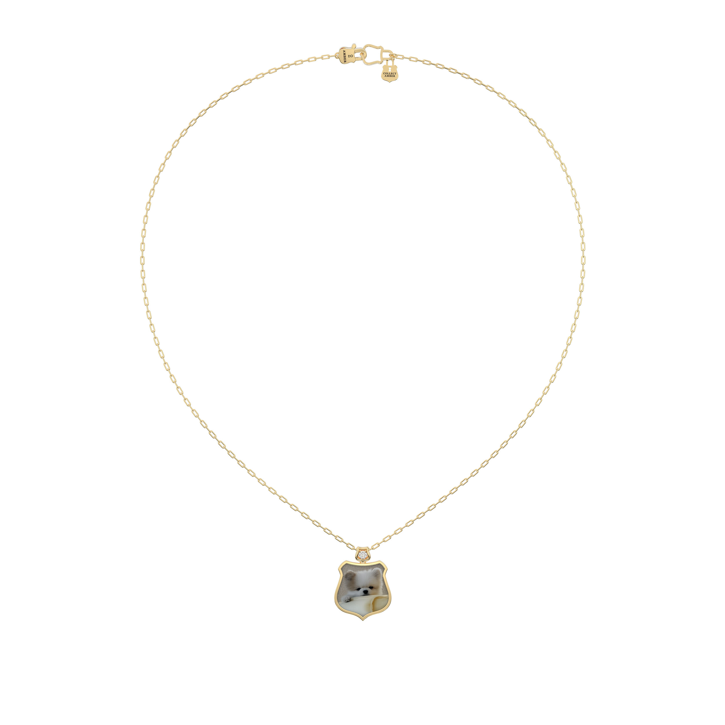 이 18K 골드 체인 목걸이는 견고하게 짜인 체인 위에 Amber의 상징 Aegis 심볼을 조화롭게 배치하여, 매일의 삶 속에서도 나만의 보호와 힘을 잃지 않도록 돕는 의식 같은 주얼리입니다.