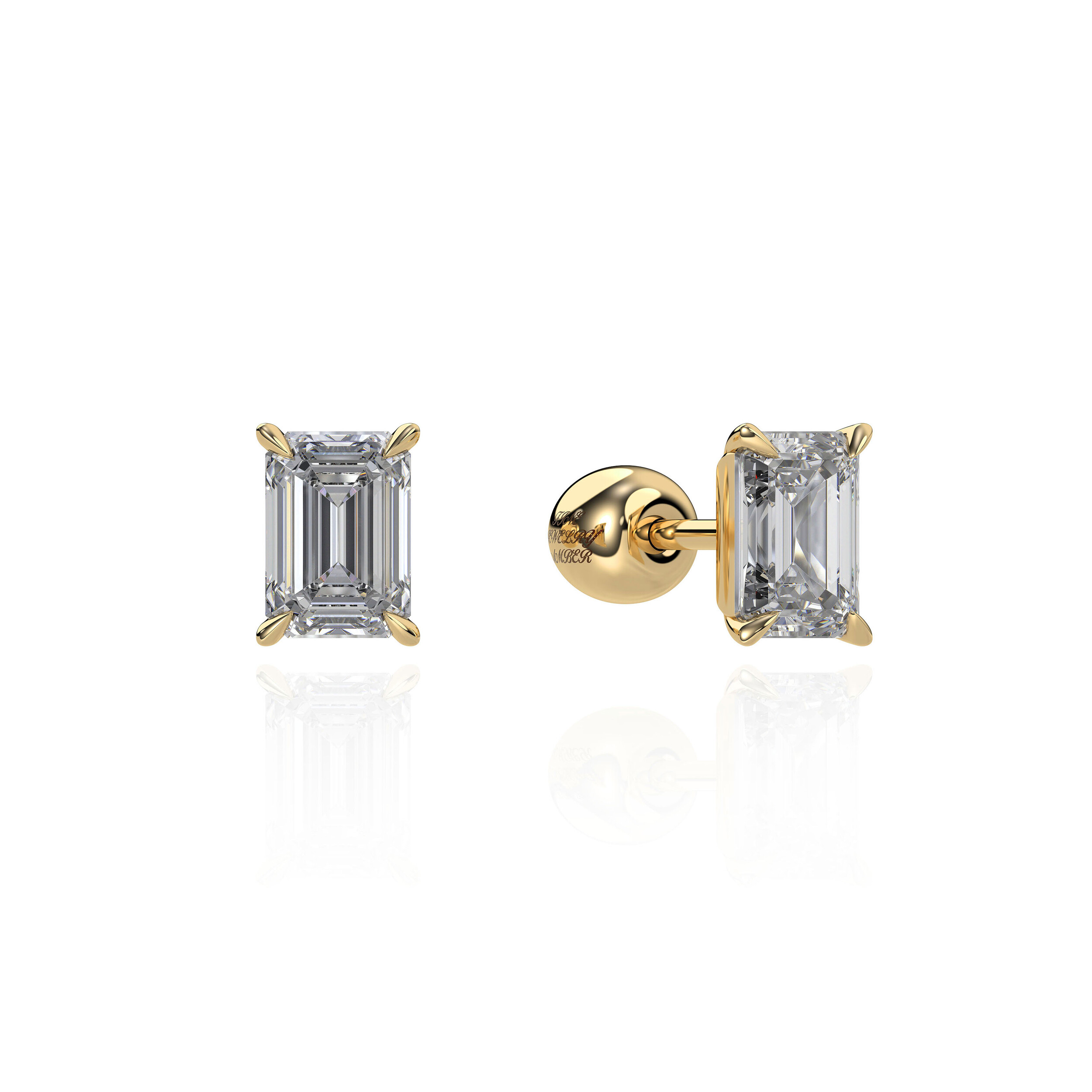 Fine Jewelry Amber의 18K 골드 에메랄드컷 모티프 피어싱. 정교한 세팅으로 다이아몬드가 박혀 있어 화려하면서도 일상적으로 착용 가능한 디자인을 보여줍니다 .