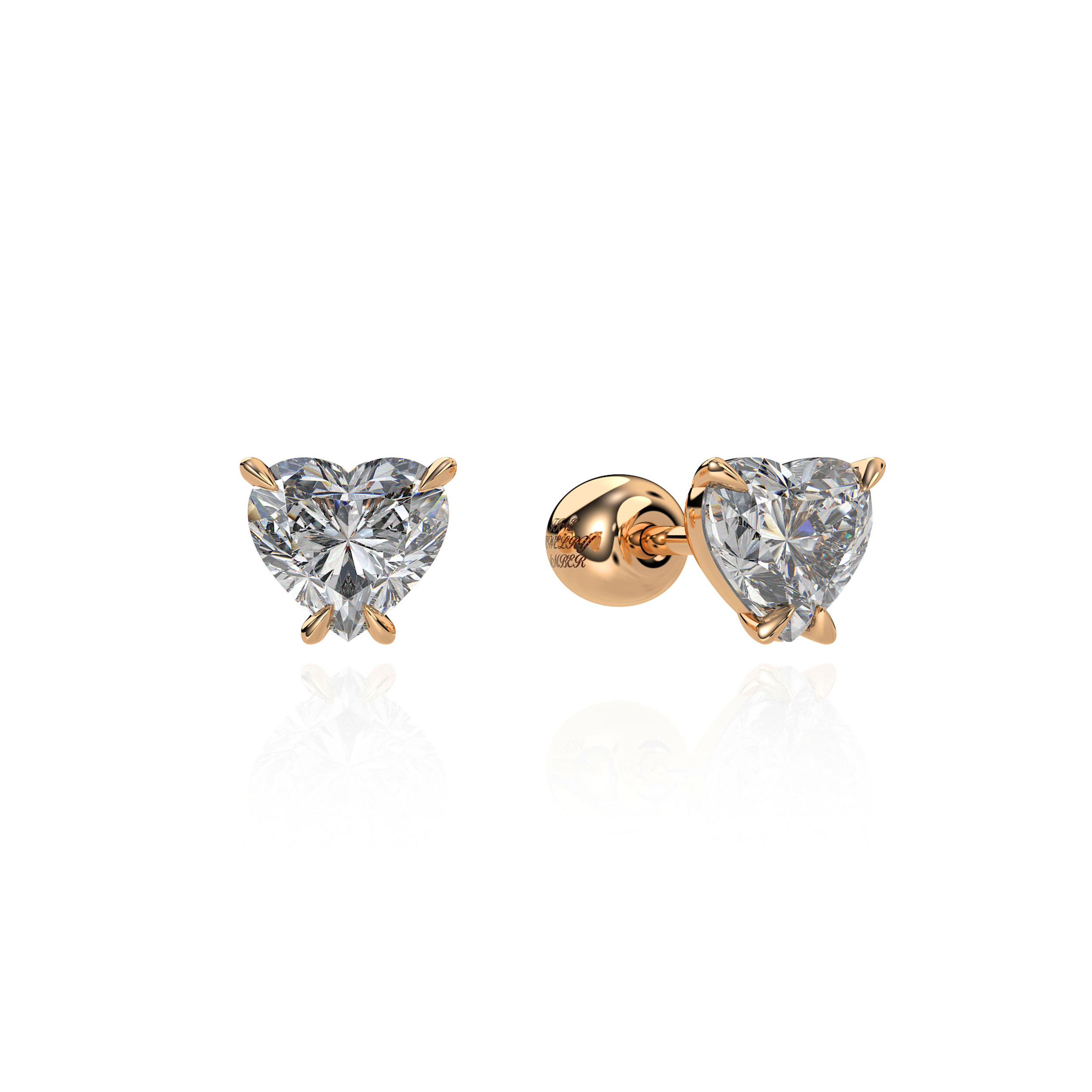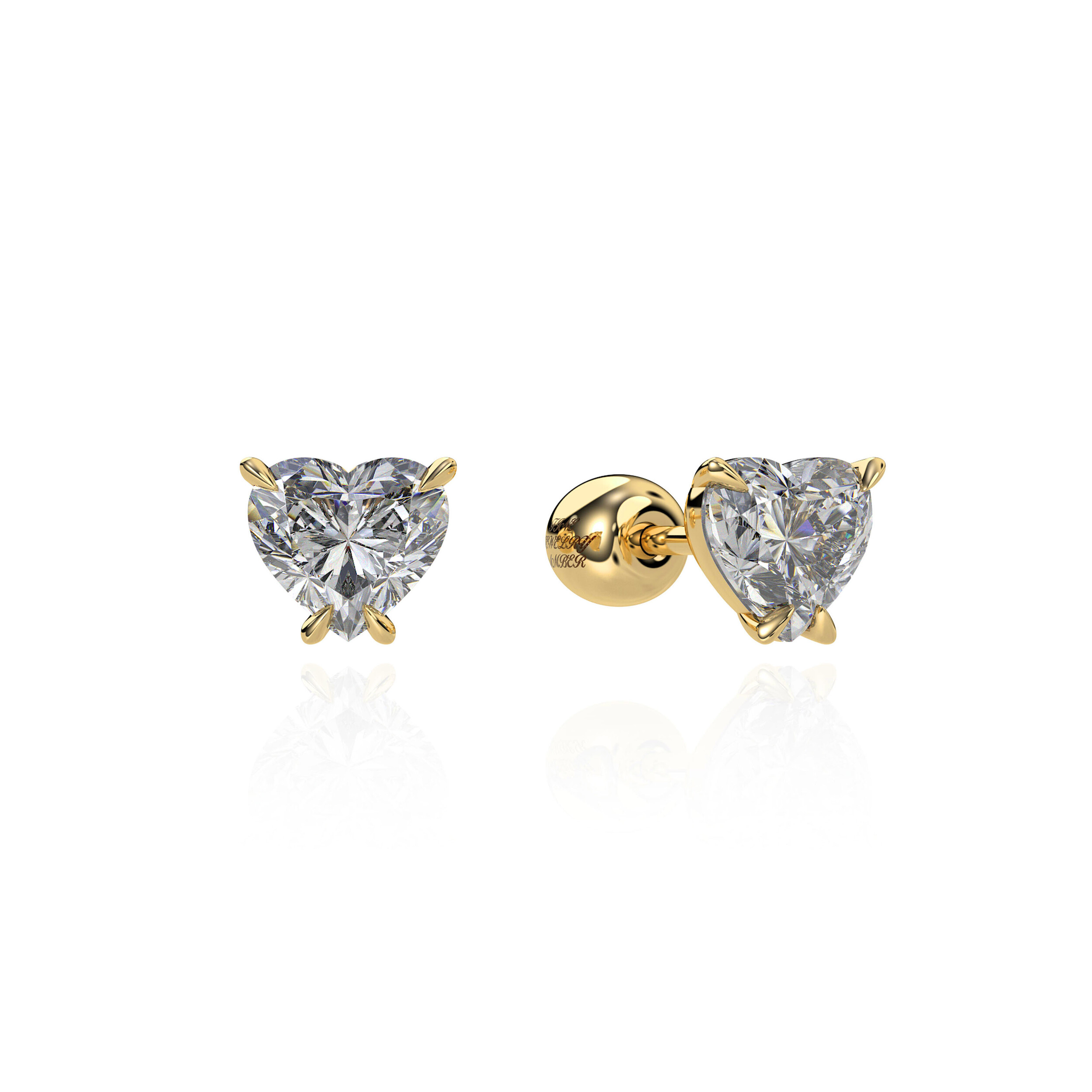 Fine Jewelry Amber의 18K 골드 하트컷 모티프 피어싱. 정교한 세팅으로 다이아몬드가 박혀 있어 화려하면서도 일상적으로 착용 가능한 디자인을 보여줍니다 .