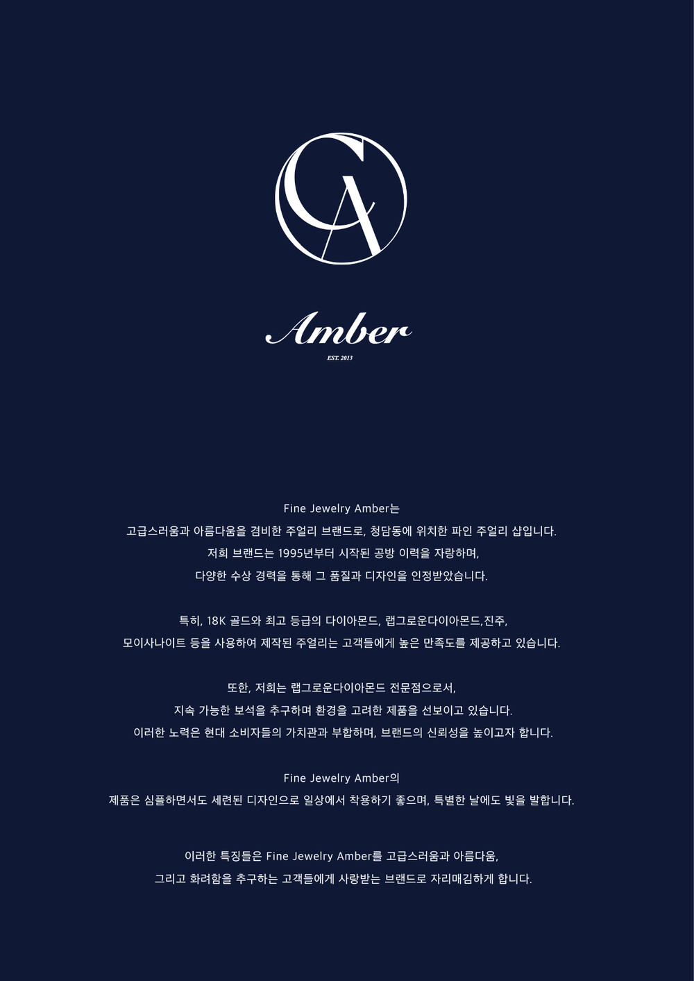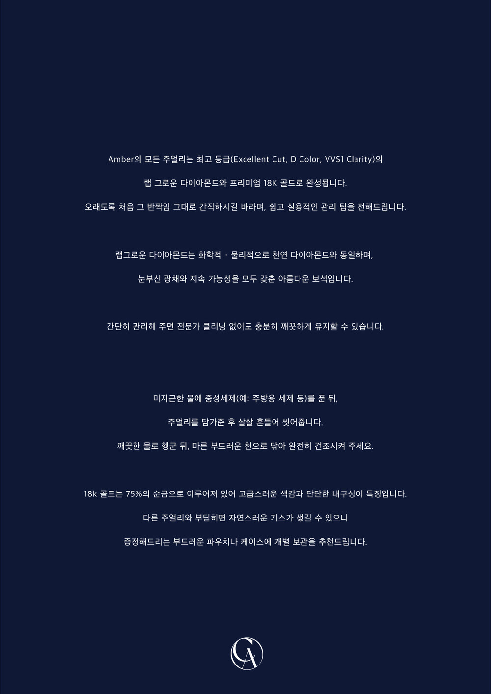 엠버가 고집하는 18K 골드는 주얼리 소재로서 최적의 순도를 지니고 있어 알레르기 걱정 없이 안심하고 착용할 수 있으며, 오랜 시간 착용해도 변색이나 변형이 적어 내구성이 뛰어납니다. 다이아몬드와 보석들은 전문 장인의 손길을 거쳐 견고하게 세팅되기 때문에, 작은 피어싱이라도 디테일에서 오는 고급스러움을 놓치지 않습니다. 하나의 피어싱에 담긴 이러한 정성과 품질 덕분에, 귓불에 빛나는 작은 예술 작품을 소장한 듯한 만족감을 느끼실 수 있을 거예요.