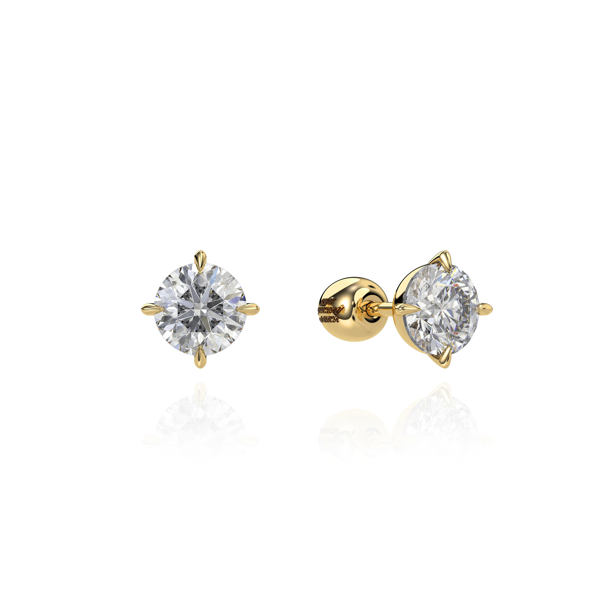 Fine Jewelry Amber의 18K 골드 브릴리언트컷 모티프 피어싱. 정교한 세팅으로 다이아몬드가 박혀 있어 화려하면서도 일상적으로 착용 가능한 디자인을 보여줍니다 .