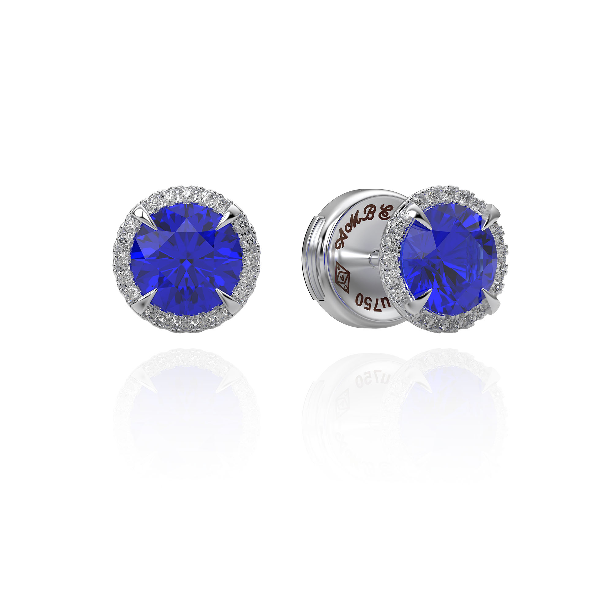 HALO Brilliant cut 1ct L sapphire earrings.18k d.vvs1