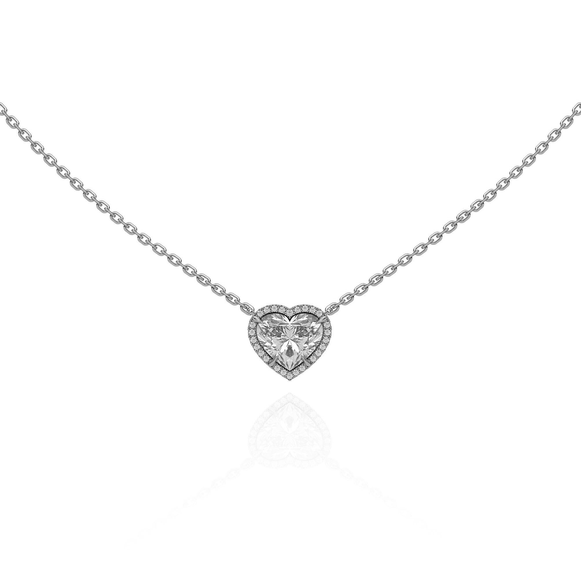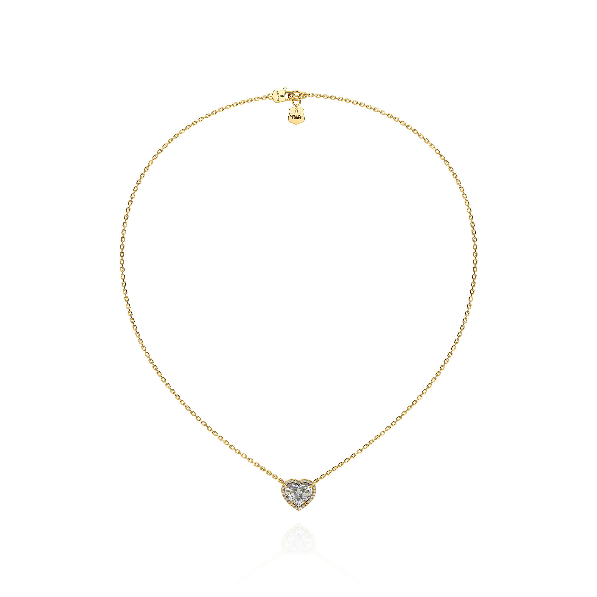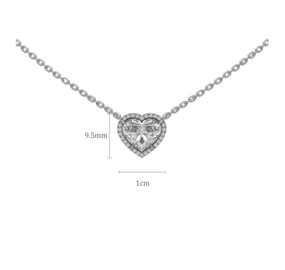 Amber의 Heart Halo Necklace는 2캐럿 하트컷 랩다이아몬드가 지닌 섬세하고도 선명한 아름다움을 가장 순도 높은 형태로 담아낸 주얼리입니다.