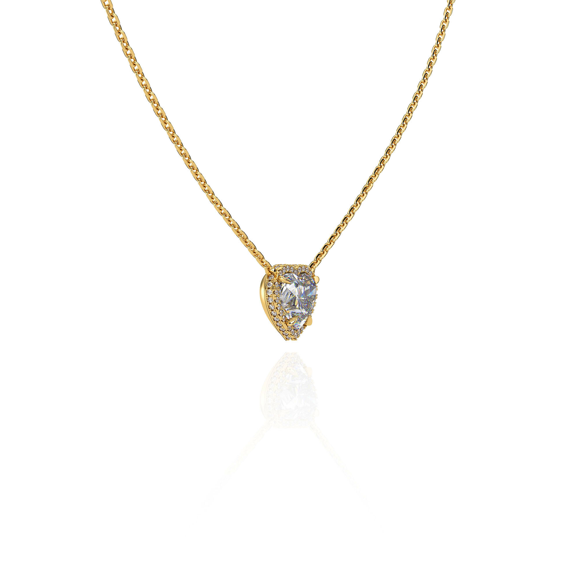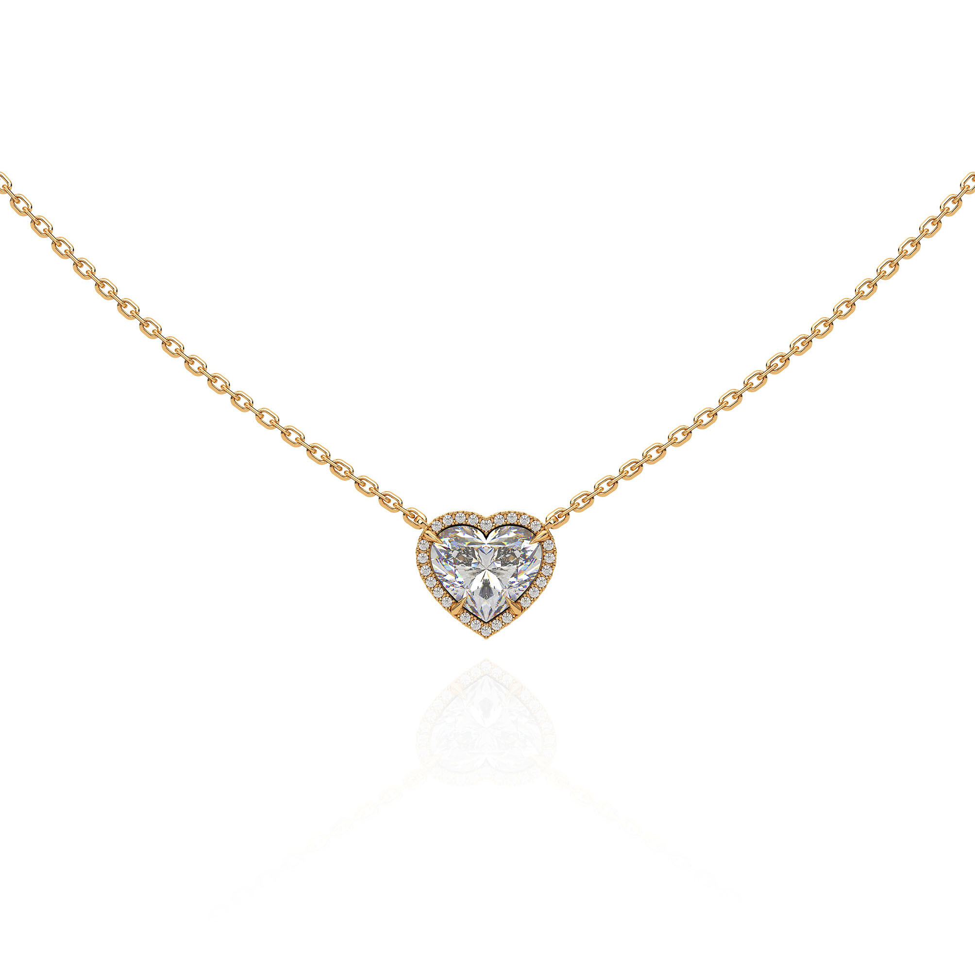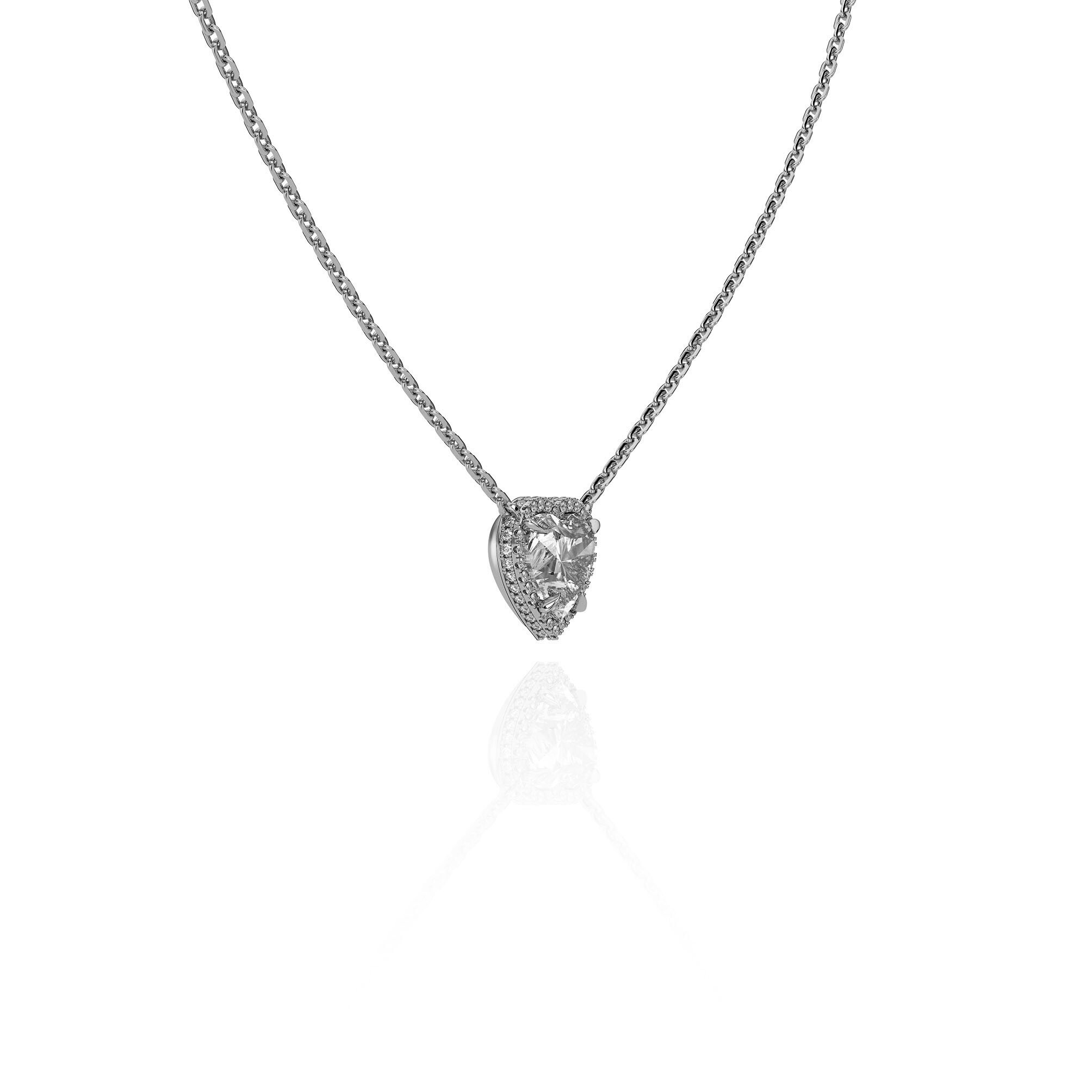 Amber의 Heart Halo Necklace는 2캐럿 하트컷 랩다이아몬드가 지닌 섬세하고도 선명한 아름다움을 가장 순도 높은 형태로 담아낸 주얼리입니다.