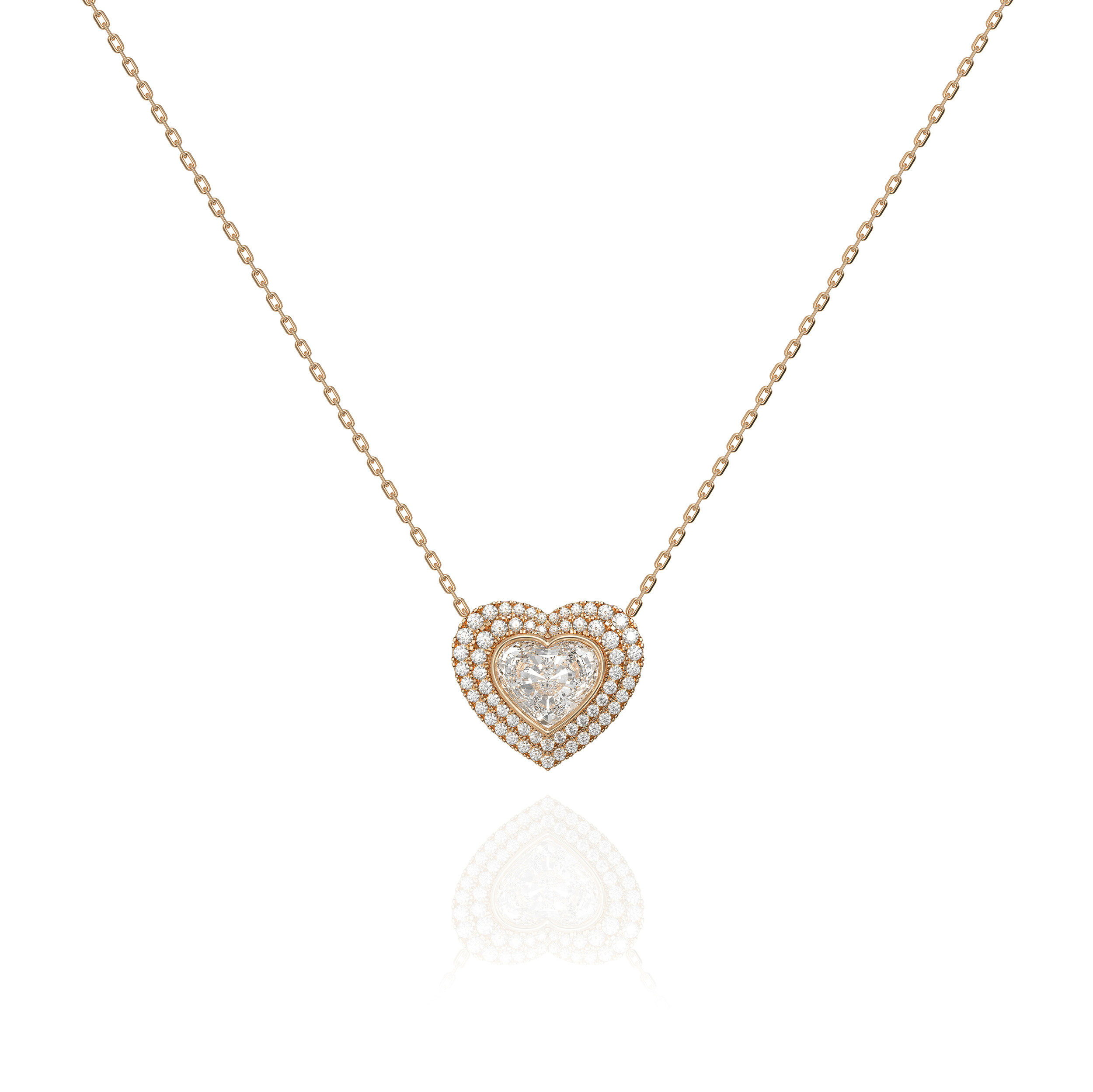 체인은 정교하며 단아한 정제된 디자인으로 선택하여 중심의 하트가 가진 화사함과 더블 헤일로의 존재감이 가장 우아한 방식으로 집중되도록 완성되었습니다.